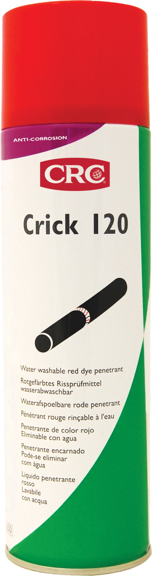 Penetrante de color rojo, eliminable con Crick 110 o con agua para pruebas no destructivas de soldadura. Detección de microgrietas y fallos en la superficie mediante prueba con líquidos penetrantes.
