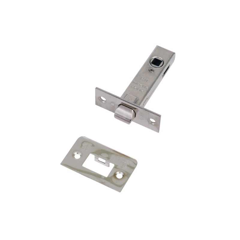 Picaporte de embutir con doble muelle con el frente y el soporte en canto cuadrado. Para manillas con cuadradillo de 8 mm en puertas de madera de paso.