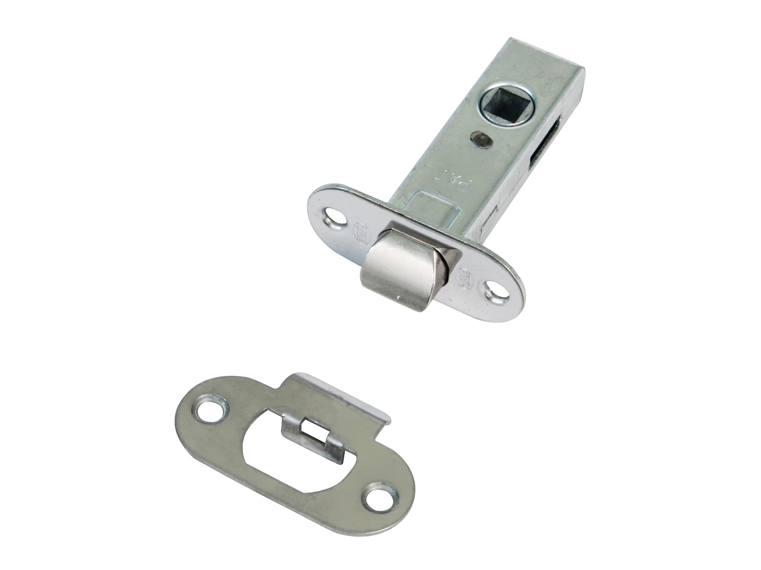 Picaporte de embutir de entrada 45 mm con frente redondo y soporte con cantos redondeados.Para manillas con cuadradillo de 8 mm en puertas de madera de paso.