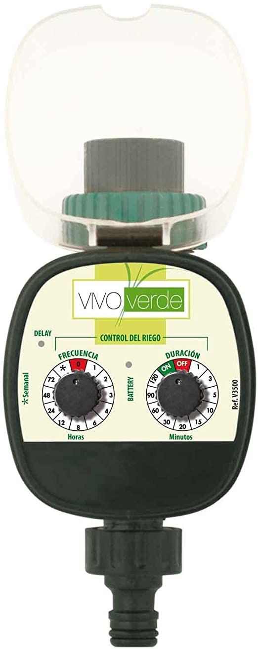 Programador muy fácil de instalar y de manejar que nos va a permitir controlar el riego de forma automática, marcando los intervalos y duración de cada riego Recomendamos siempre riegos cortos con mayor frecuencia, mejor que largos con poca frecuencia, ya que de esta forma se mantendrá mejor la humedad del sustrato.