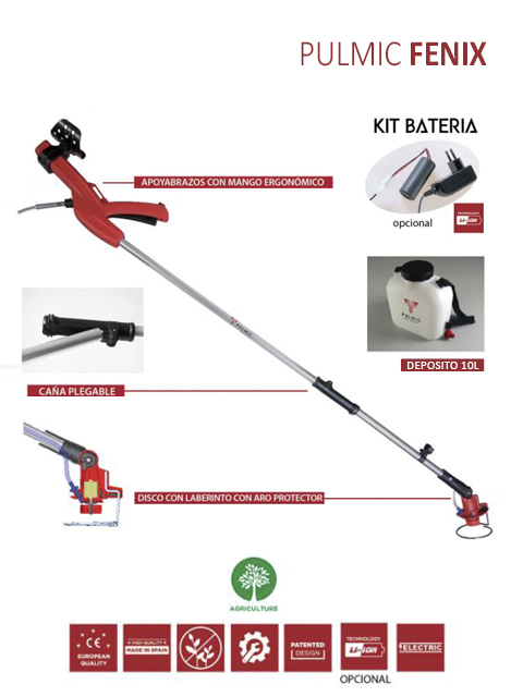 Pulverizador diseñado para aplicaciones de herbicidas sistémicos (Roundup, touchdown, grifosato, etc.), o desinfección capacidad del depósito 10l. - Máquina con apoyabrazos y mango anatómico. Peso ligero, solo 700 gr. Maquina plegable. Sistema de doble laberinto para evitar la entrada de humedad en el motor. Anillo protector de hierbas y golpes.
