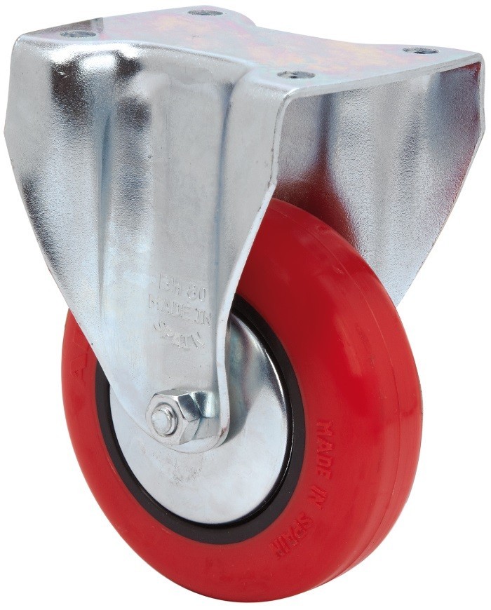 Ruedas de poliuretano rojo inyectado. Especialmente indicadas para soportar cargas hasta 100 Kg.