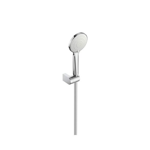 Set de ducha. Incluye ducha de mano de 110 mm de 3 funciones, soporte de ducha articulado y flexible anticorrosión de PVC satinado de 1,70 m. Con un caudal de 6L/min