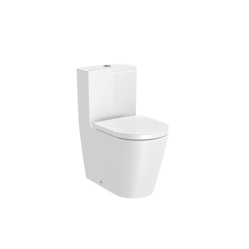 Taza Roca Rimless® adosada a pared compacta con salida dual para inodoro de tanque bajo. Incluye juego de fijación y codo de evacuación.