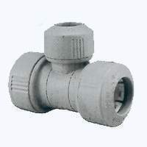 Te reducida en el centro HD13 de 22x15x22mm. Accesorio de polibutileno para sistemas profesionales de tuberías flexibles de polibutileno.