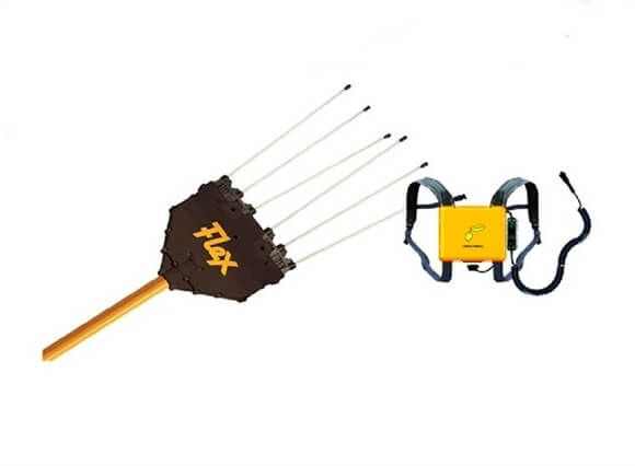 Vareador profesional a batería con mochila Flex PFLHerramienta profesional destinada a la recogida de oliva en árbol, golpeando con sus varillas las ramas para facilitar la caída del fruto, sustituye el vareado manual tradicional ahorrando tiempo y esfuerzo.Con barra fija y varillas flexibles, es el modelo más simple y ligero de la serie profesional, siendo la máquina ideal para propietarios de olivos altos hasta 5 metros.Incluye la batería de Litio fácilmente transportable en su mochila.Características:6 varillasApertura varilla máxima: 60 cmApertura mínima de varilla: 10 cmÁngulo de inclinación del cabezal: 20ºLongitud de trabajo: 240 cmBatería 12 VAbsorción media: 4 AAutonomía de trabajo: 8 horasTiempo de carga: 8 hPeso: 2,7 Kg + 4,6 kg (batería)