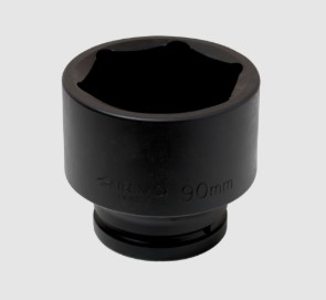 Robusto vaso de impacto de 1″ con hexágono de 90 mm diseñado para uso en aplicaciones de alta exigencia, como ejes y ruedas de camión.